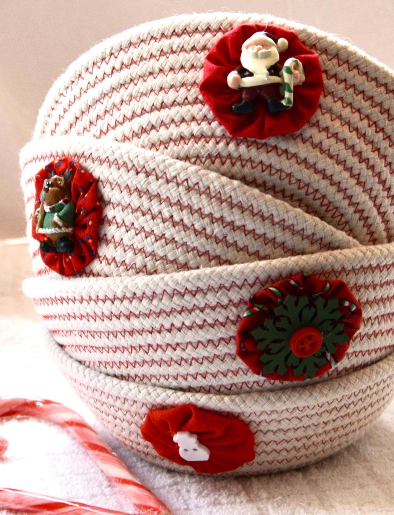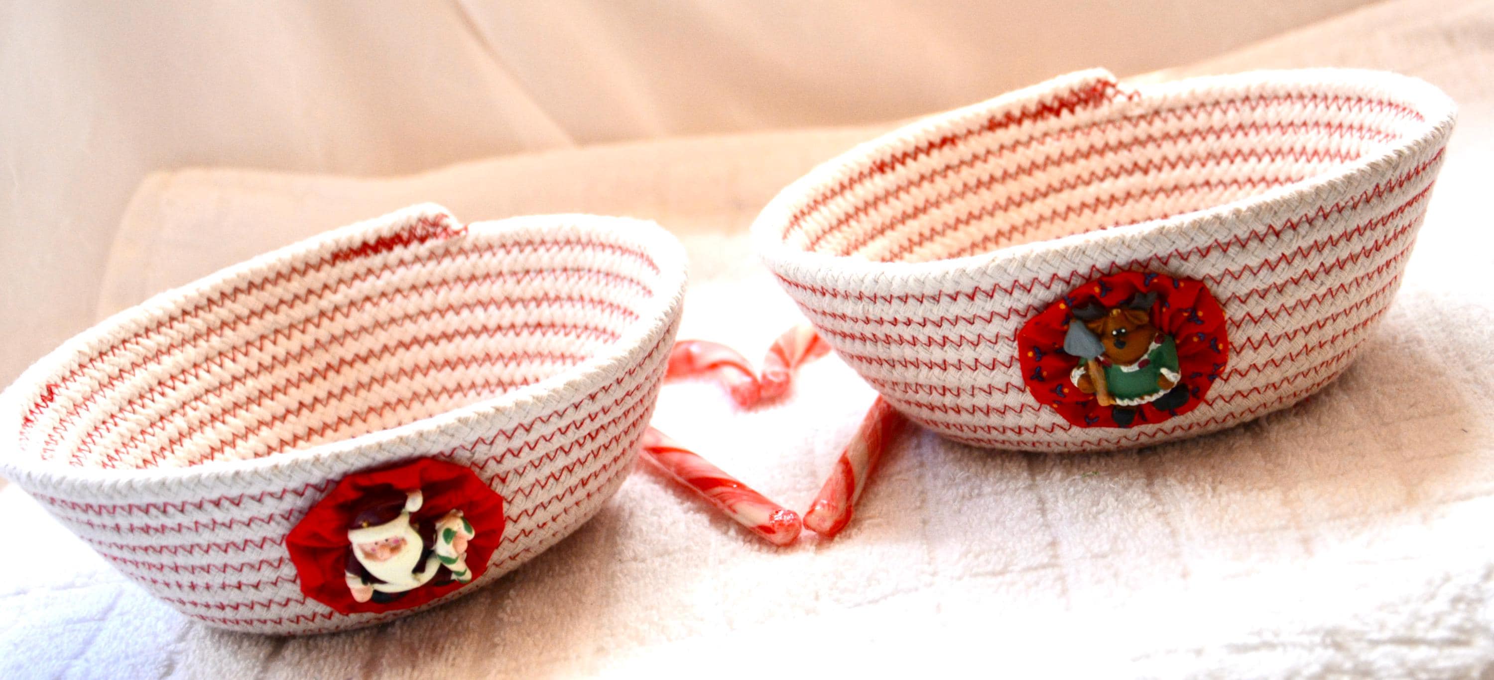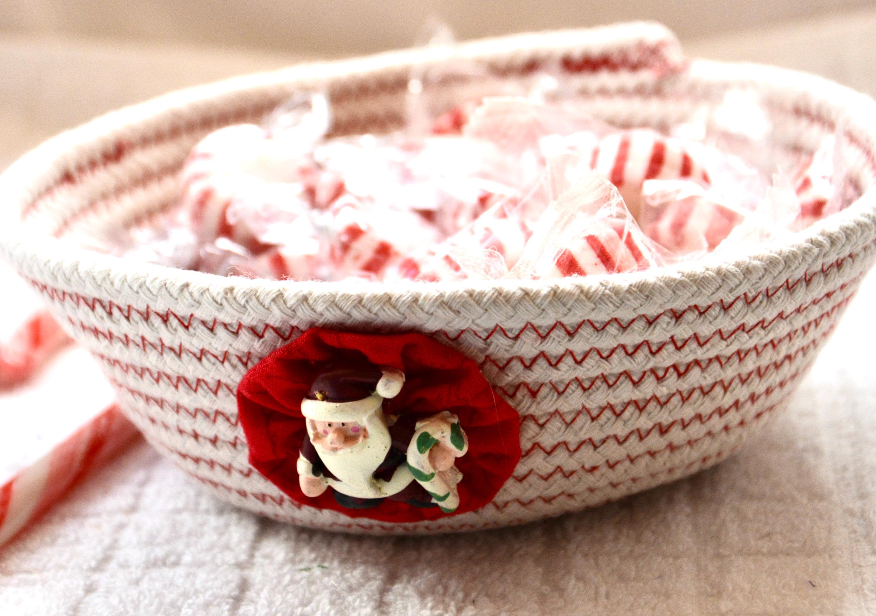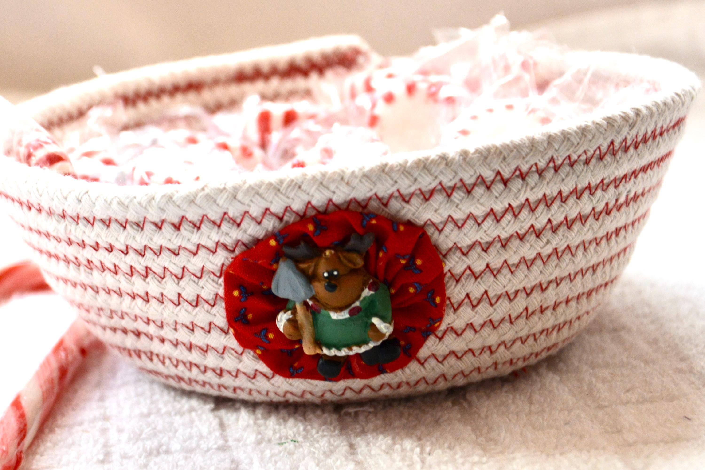 I hand coiled and machine quilted natural line to make this cute candy basket.