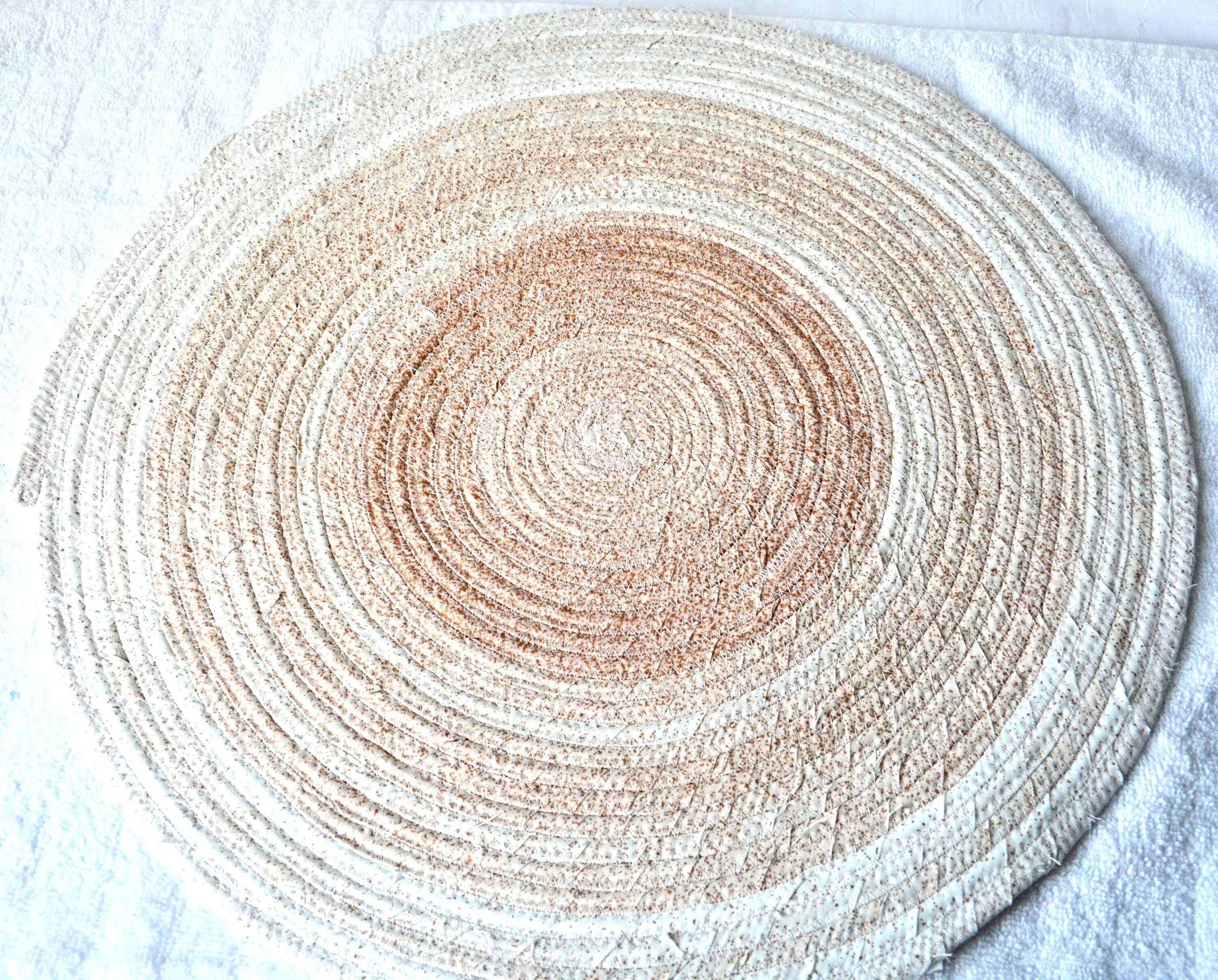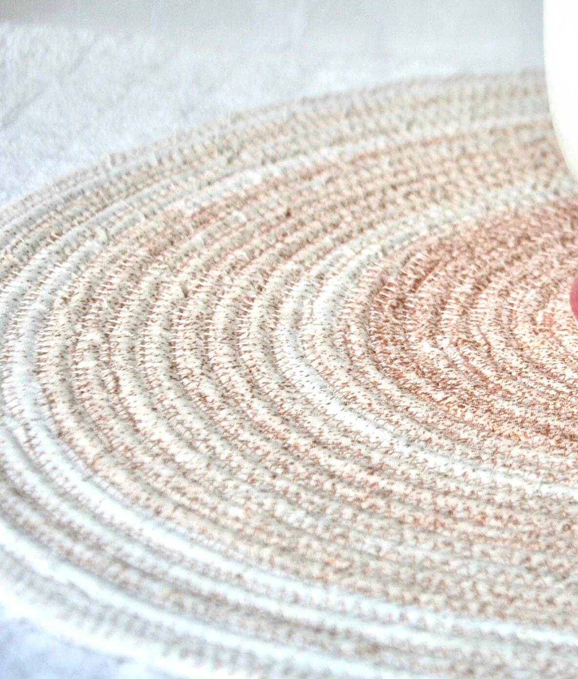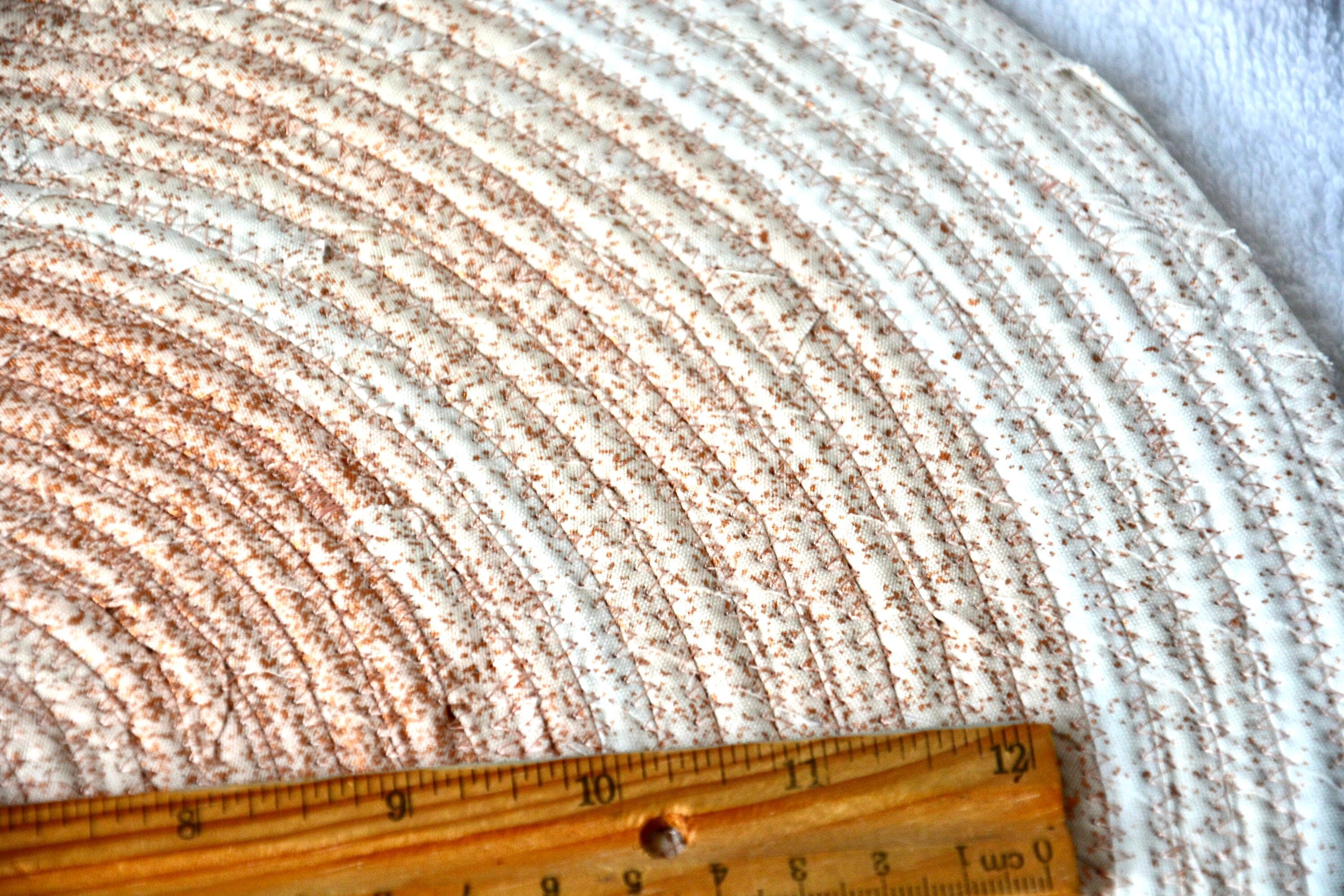 I hand wrapped these wonderful fabrics around cotton line, which I then hand coiled and machine quilted to make it sturdy. I used the raw edge technique with some fray to add a lovely shabby chic texture. These are high quality 100% cotton fabrics which show on both sides too!