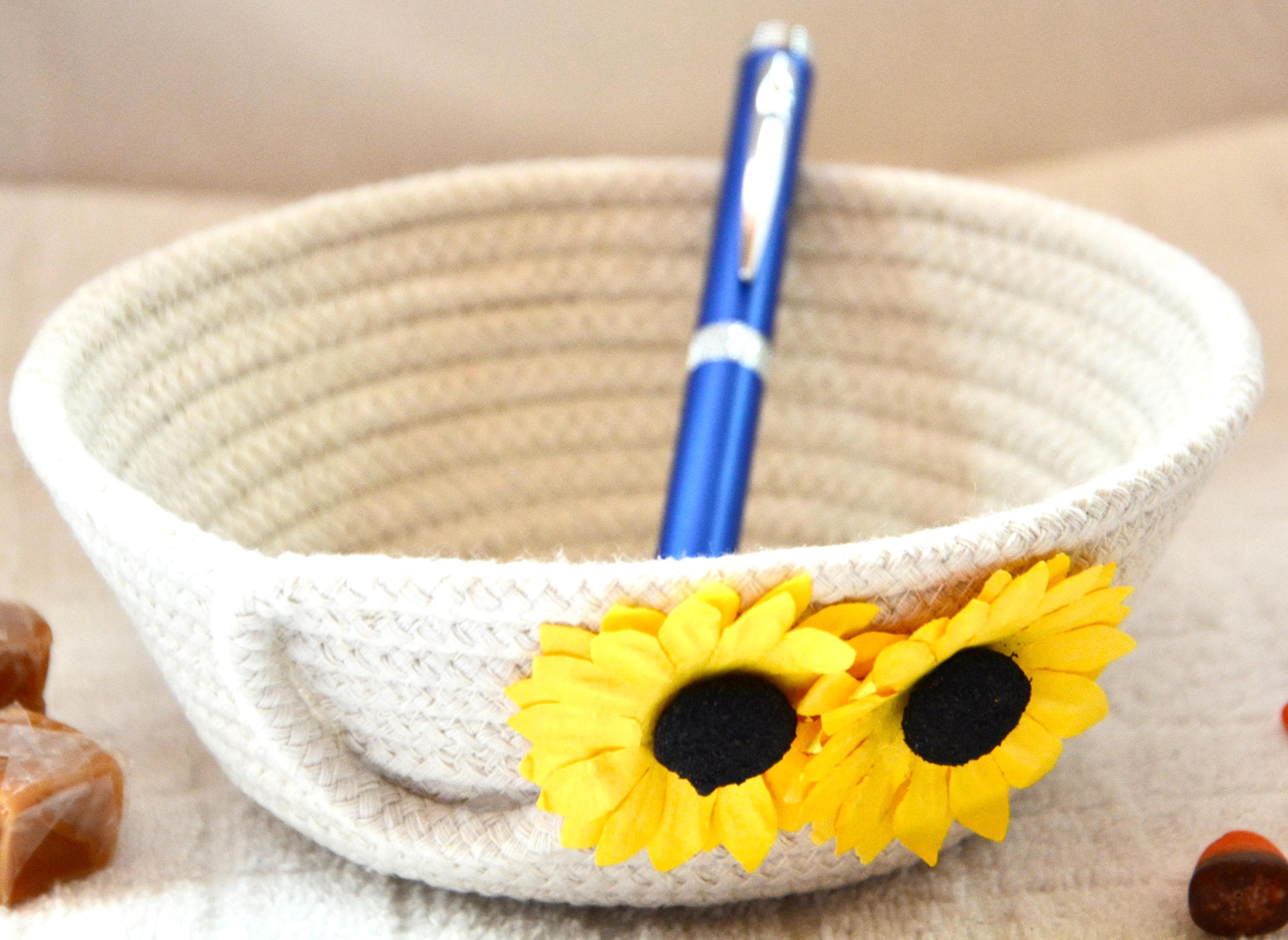 I designed and created this cute basket in my smoke-free home studio. Heart, bead, candy, ruler, pen props not included. Spot clean. Please feel free to contact me with any questions. Custom orders welcome!