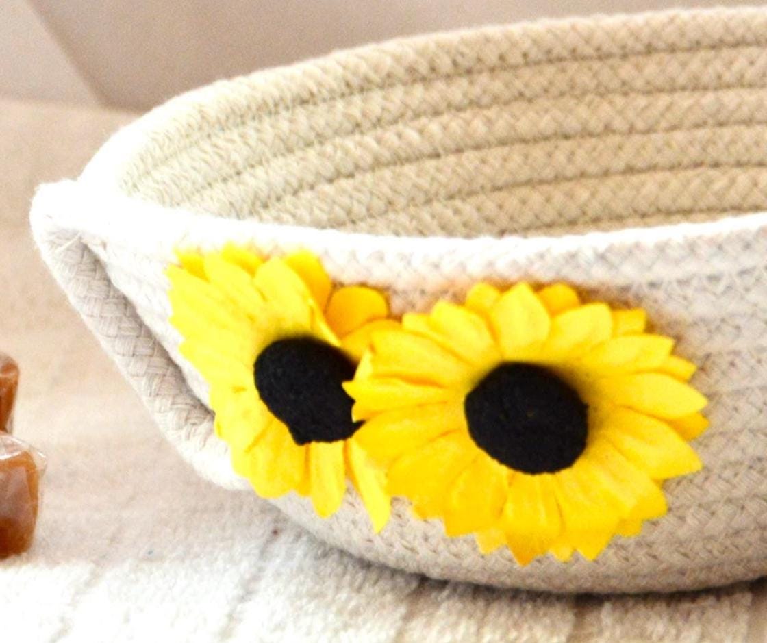 I hand coiled and machine quilted natural line to make this cute ring holder basket.