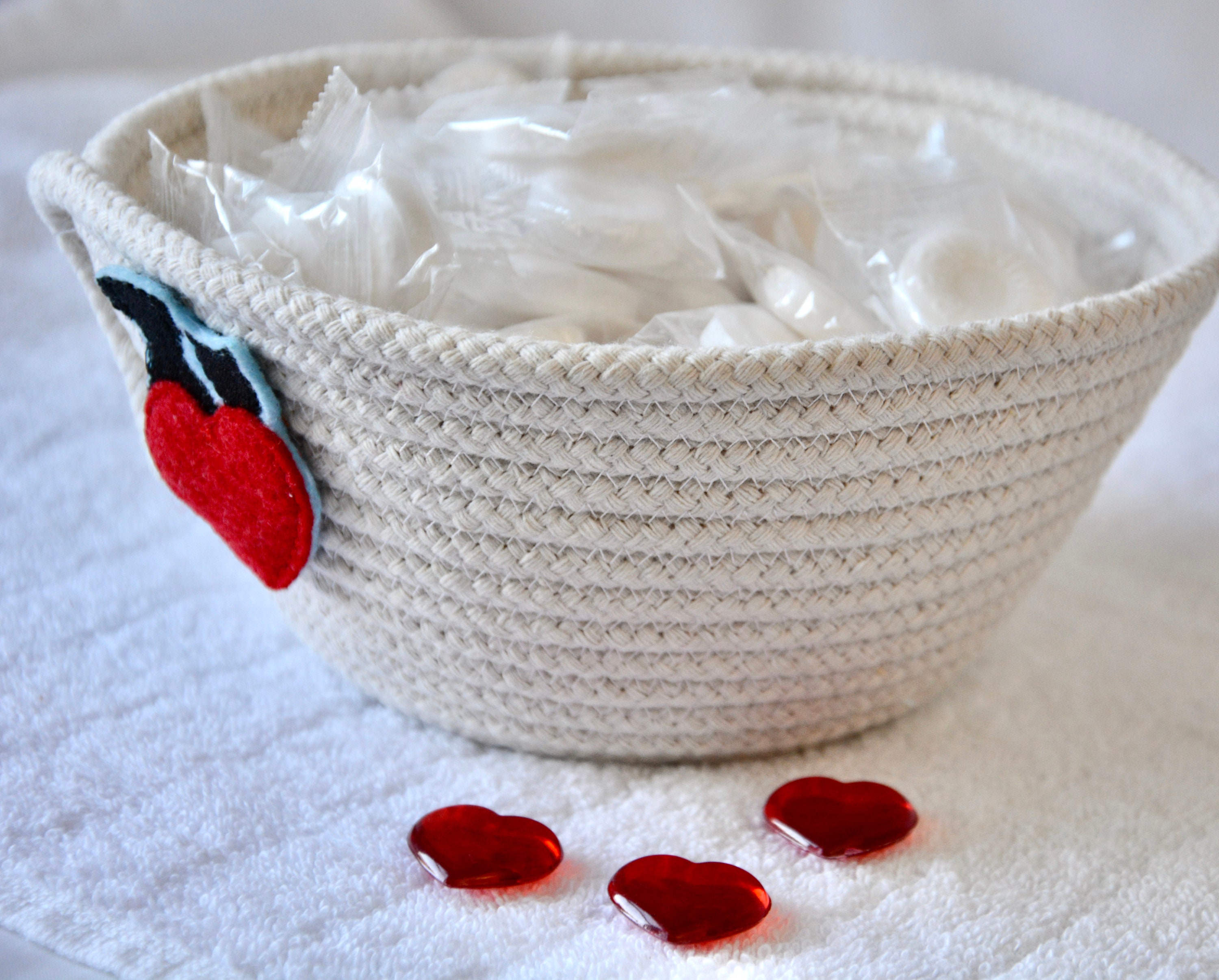 I hand coiled and machine quilted natural line to make this cute candy dish basket.