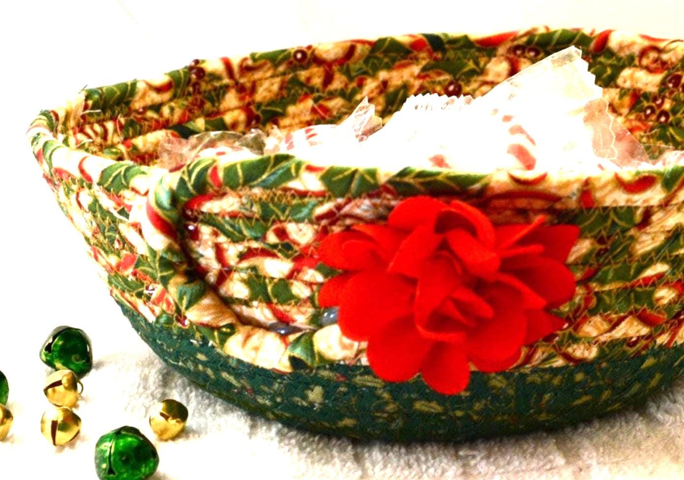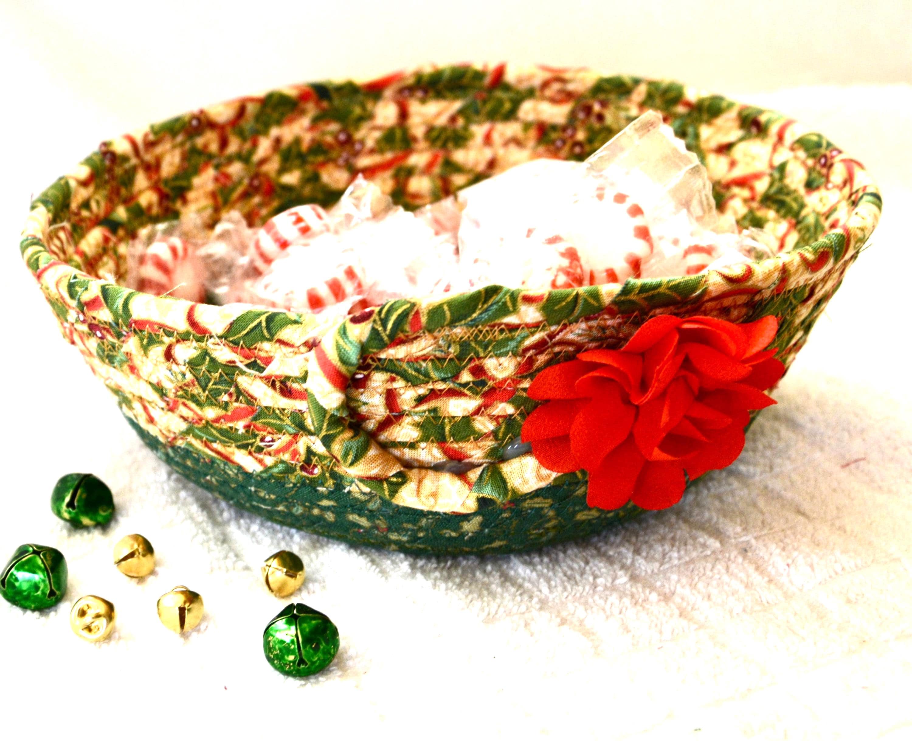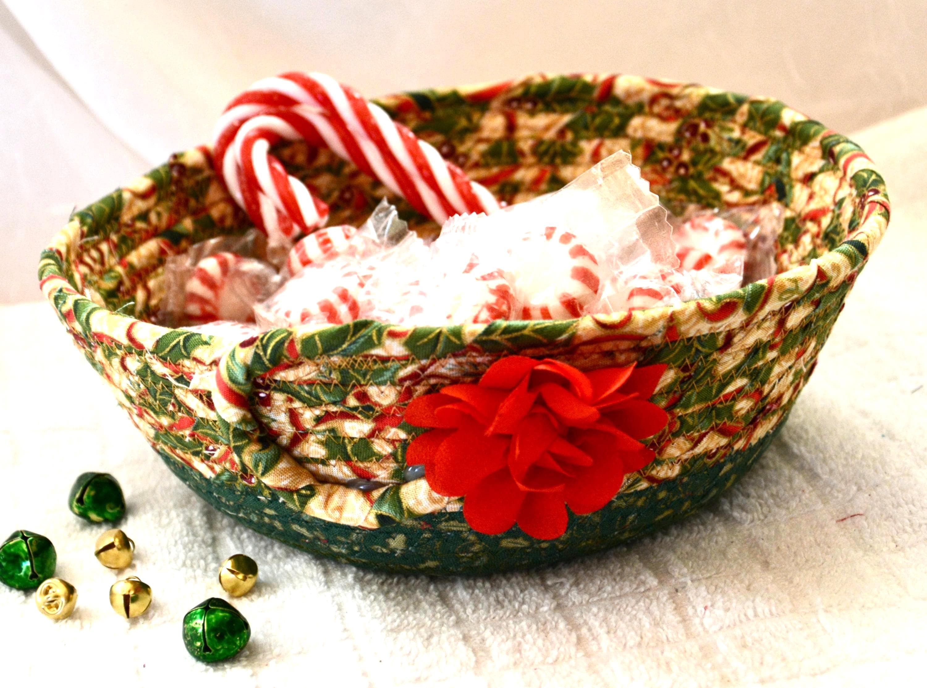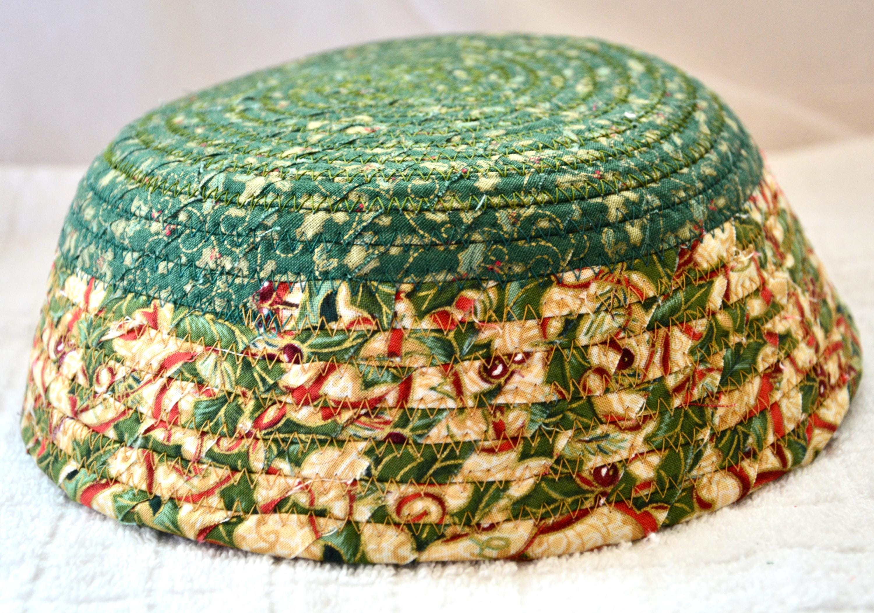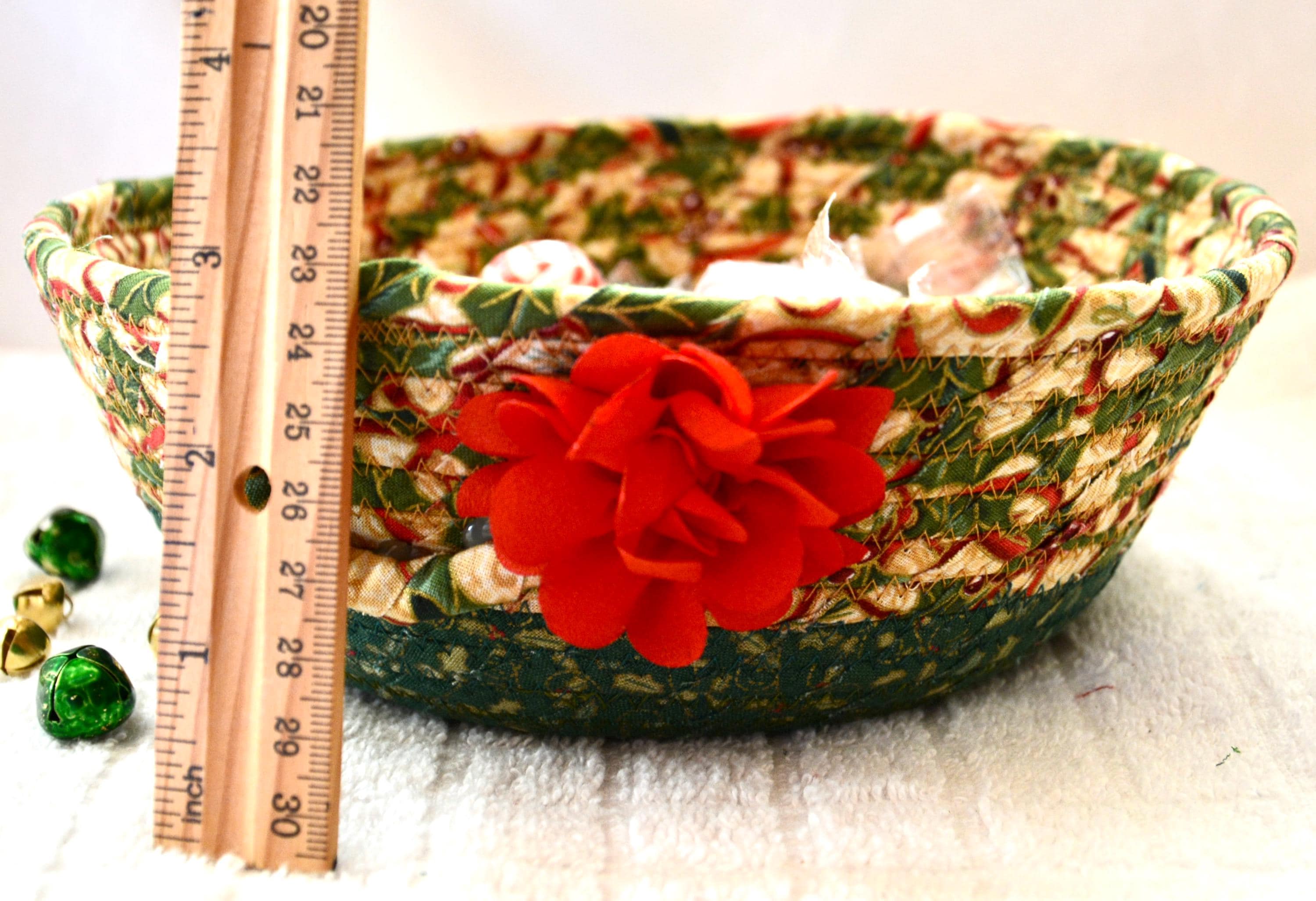 I hand wrapped these high quality 100% cotton fabrics around cotton line, which I then hand coiled and machine quilted to make it sturdy. I used the raw edge technique with some fray to add a wonderful shabby chic texture.