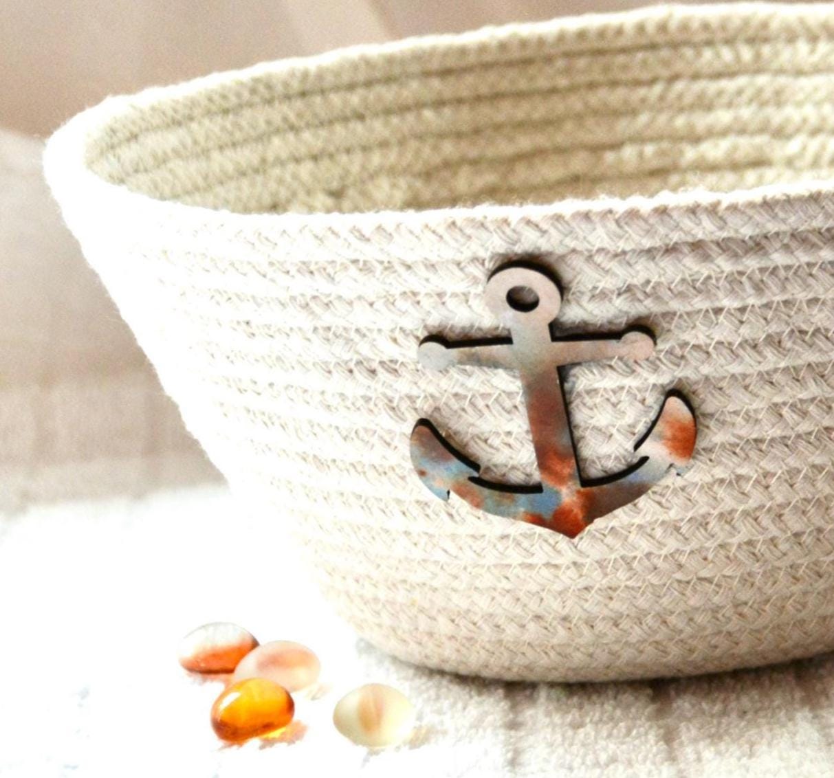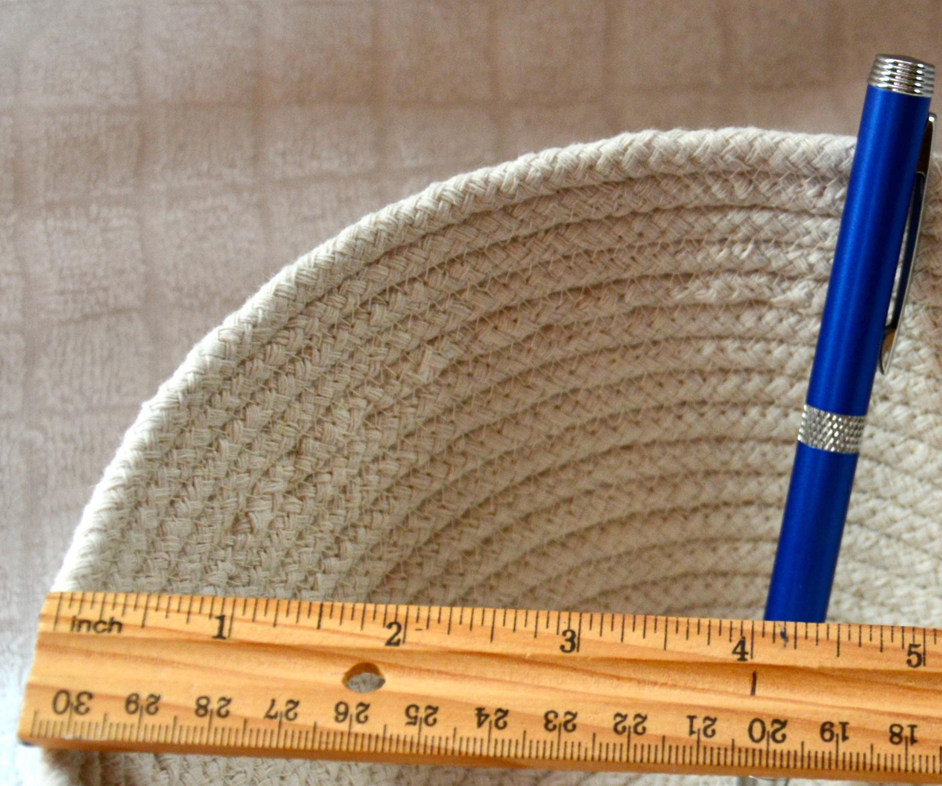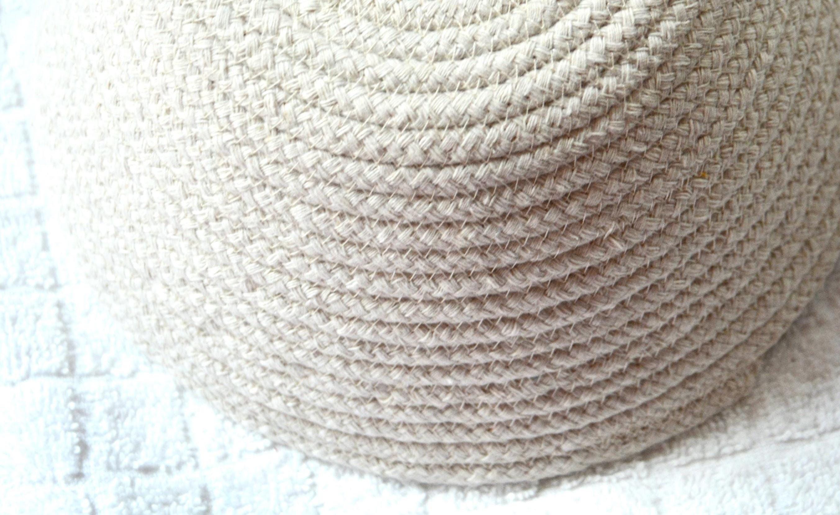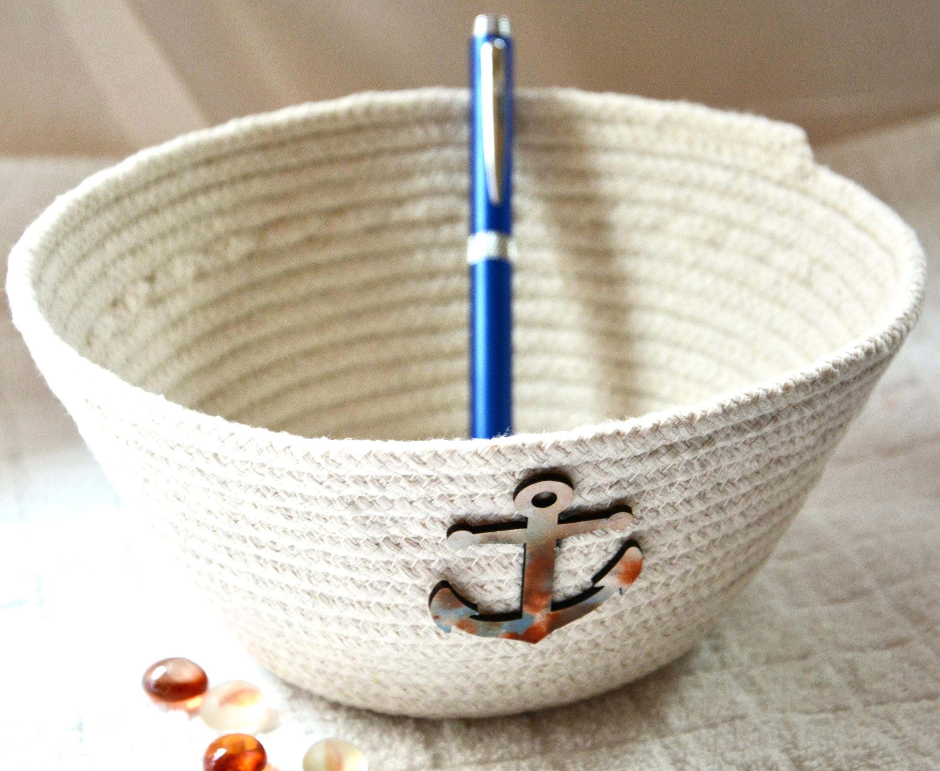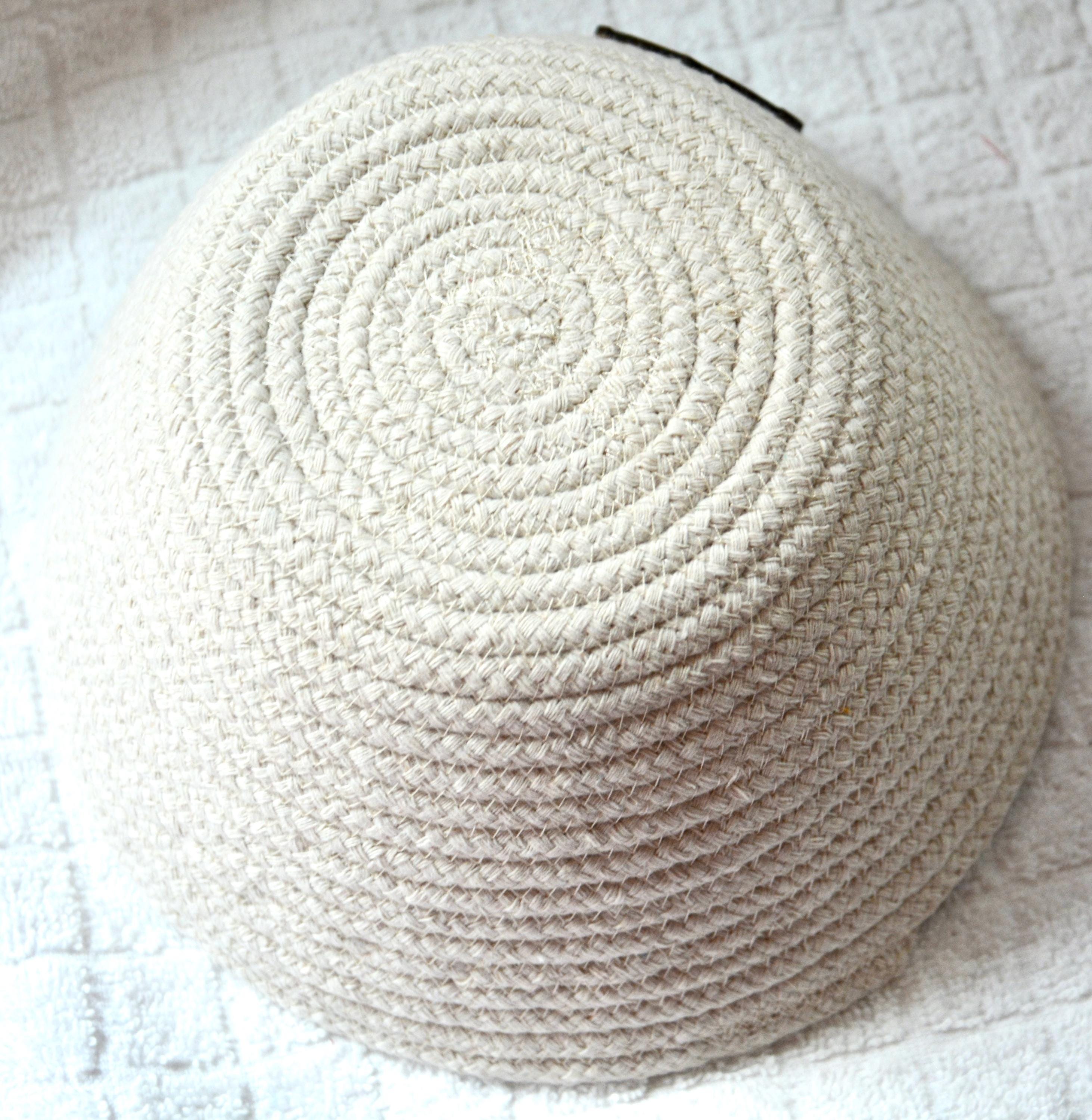I hand coiled and machine quilted natural line to make this pretty decorative basket. Please note that the rope in this basket has a twisted lumpy area that gives it a unique texture, please see all pictures.
