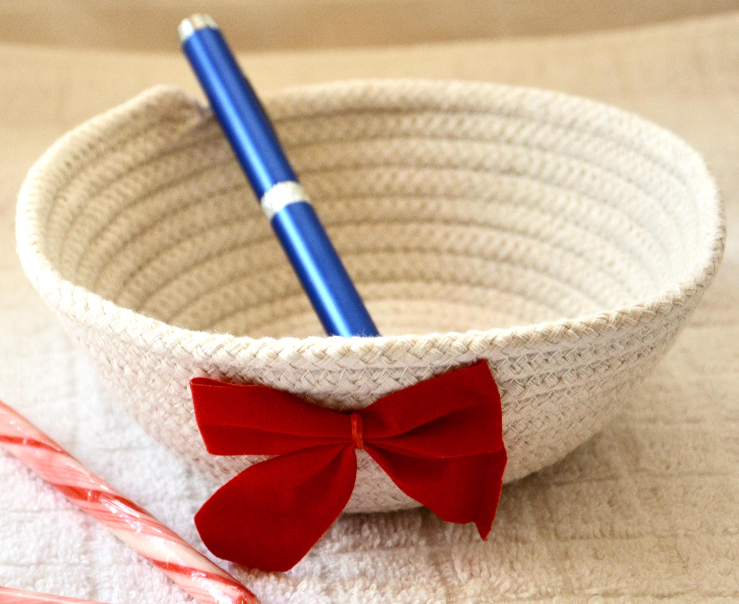 I hand coiled and machine quilted natural line to make this cute key holder basket.