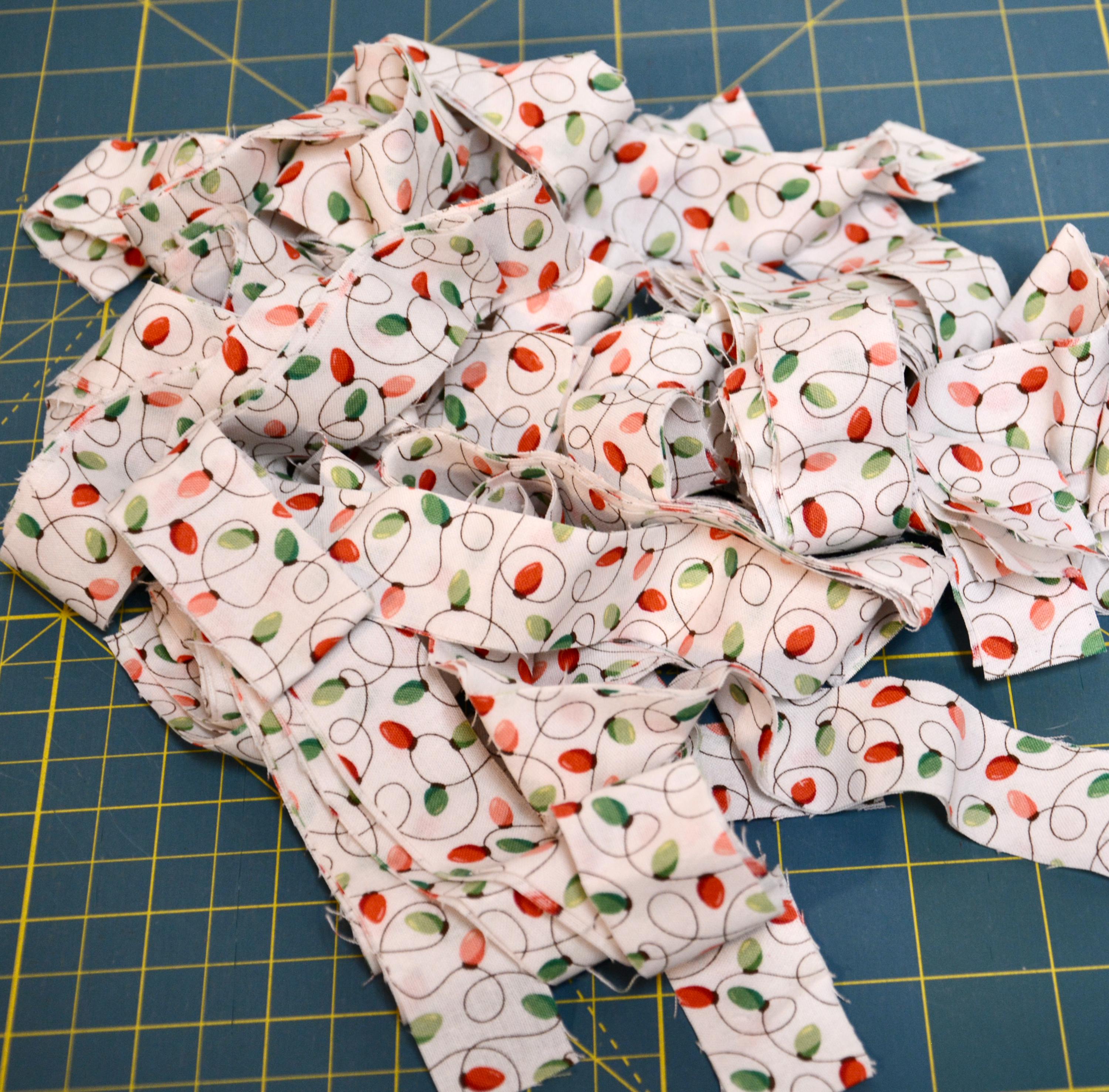 I hand wrapped these high quality Christmas 100% cotton fabrics around cotton line, which I then hand coiled and machine quilted to make it sturdy. I used the raw edge technique with some fray to add a wonderful shabby chic texture. Color placement will vary. Please see the last picture of this pretty fabric on my cutting table.
