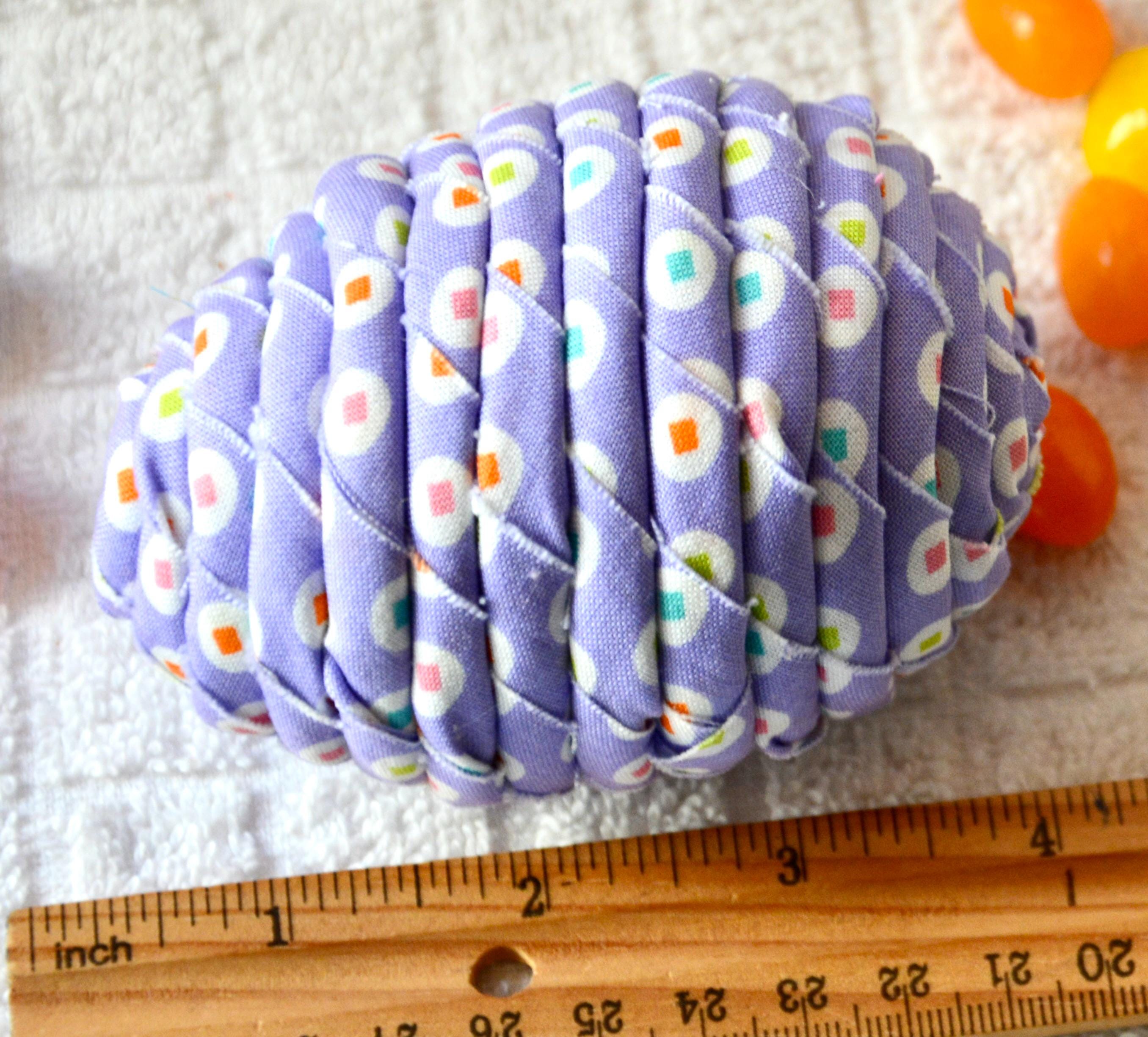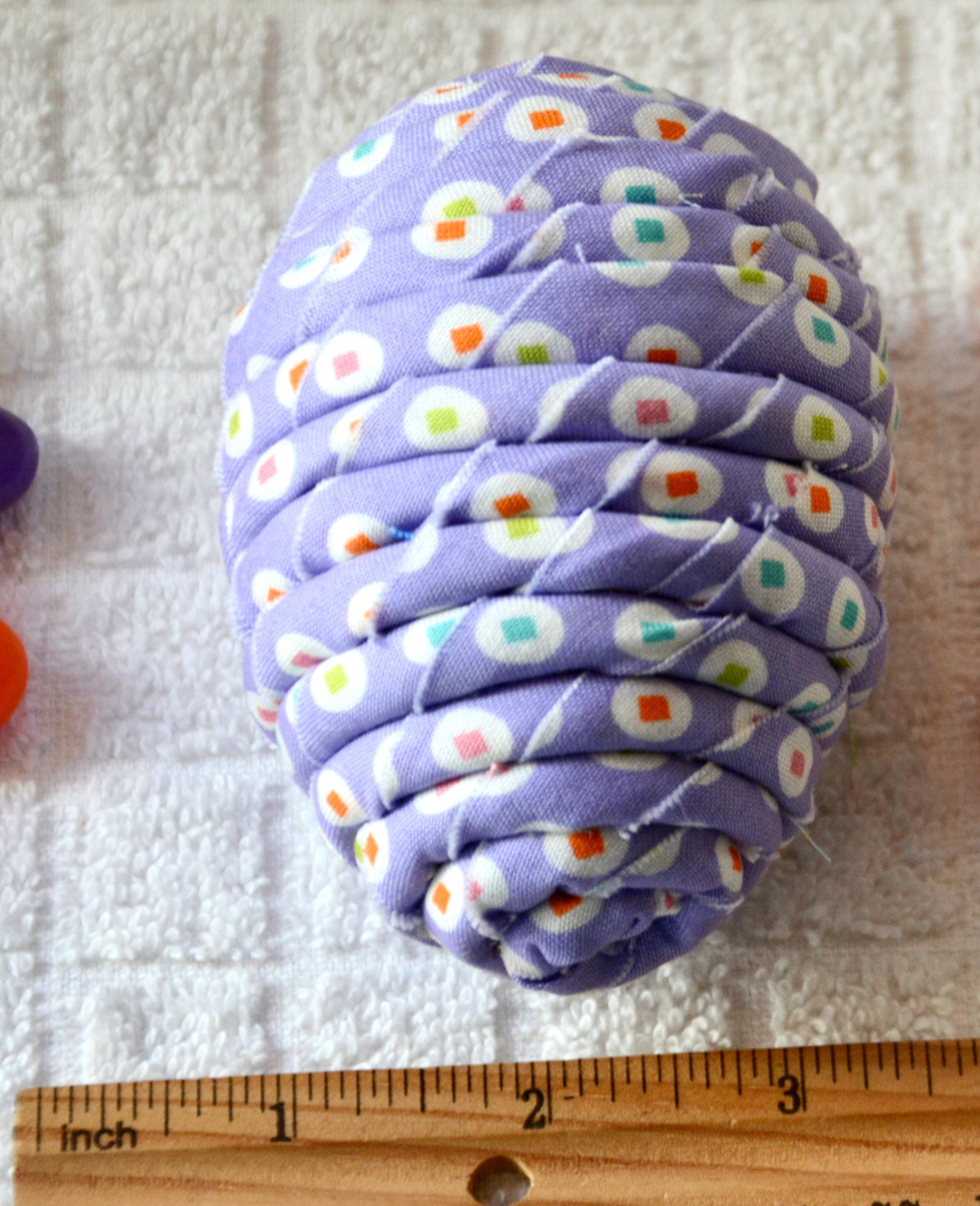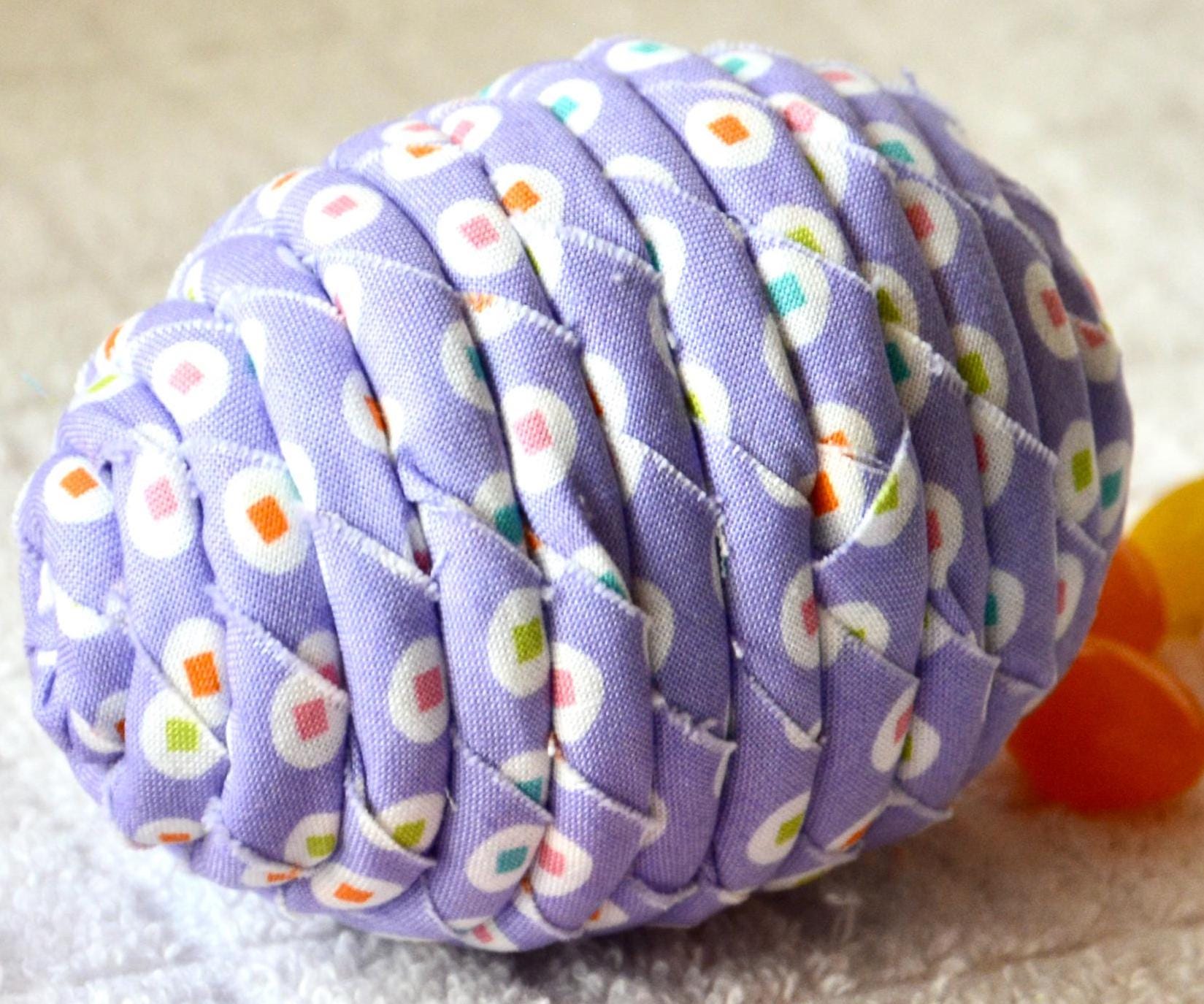 I just love this cute lavender dot fabric, it created a unique swirl pattern. I designed and created this lovely Easter egg in my smoke free home studio. Bunny, ruler, candy, jelly bean props not included. Color placement will vary. Egg does not open. Spot clean.