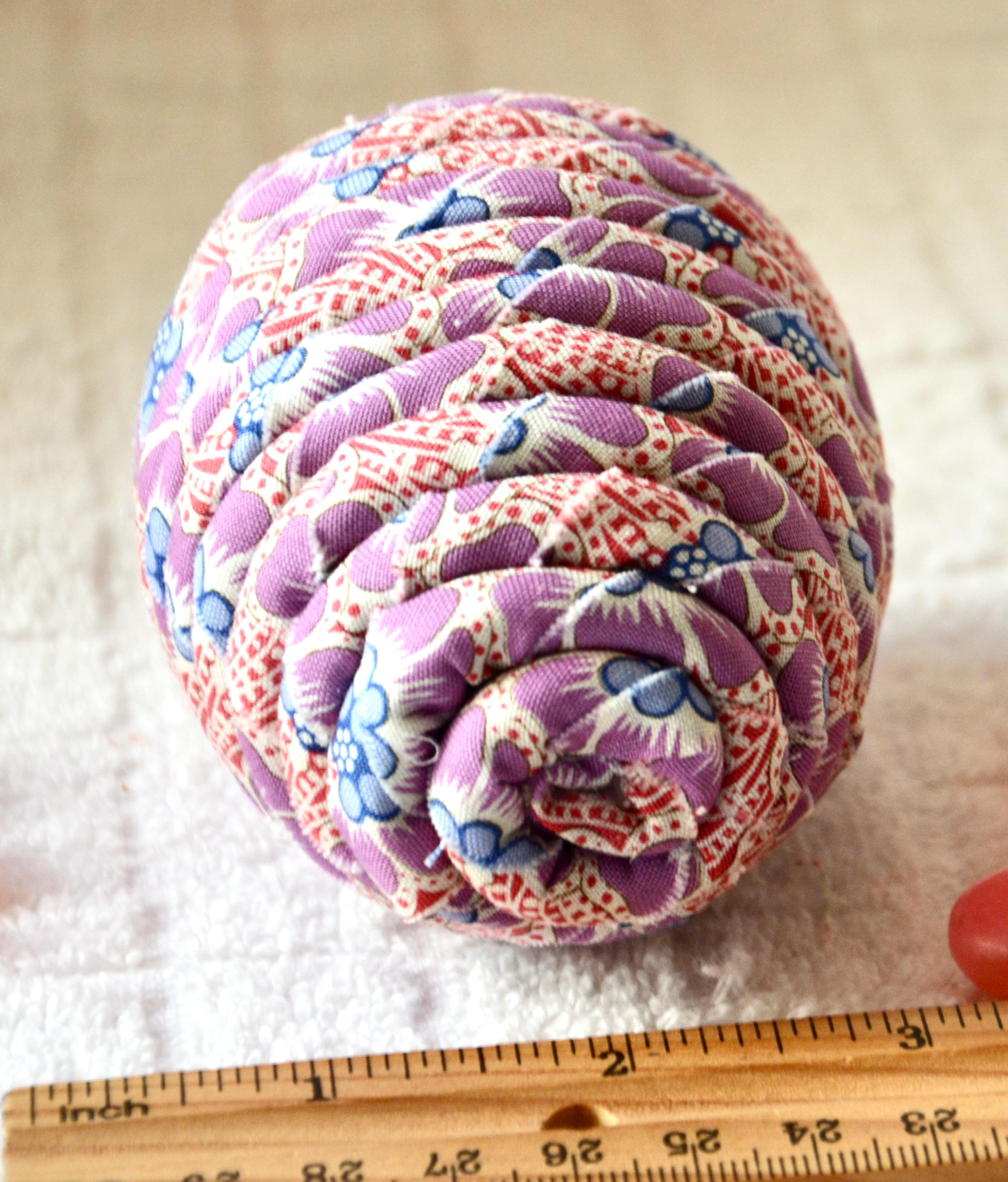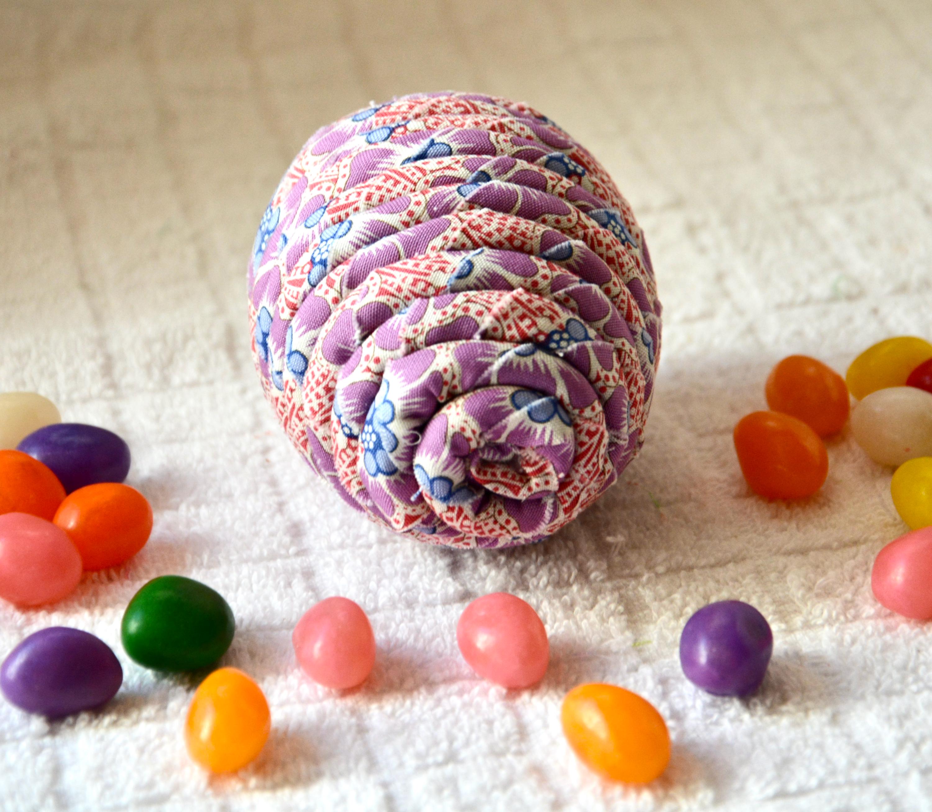 I just love this violet floral fabric, it created a unique pattern. I designed and created this lovely Easter egg in my smoke free home studio. Bunny, jelly bean, candy, ruler props not included. Color placement will vary. Egg does not open. Spot clean.
