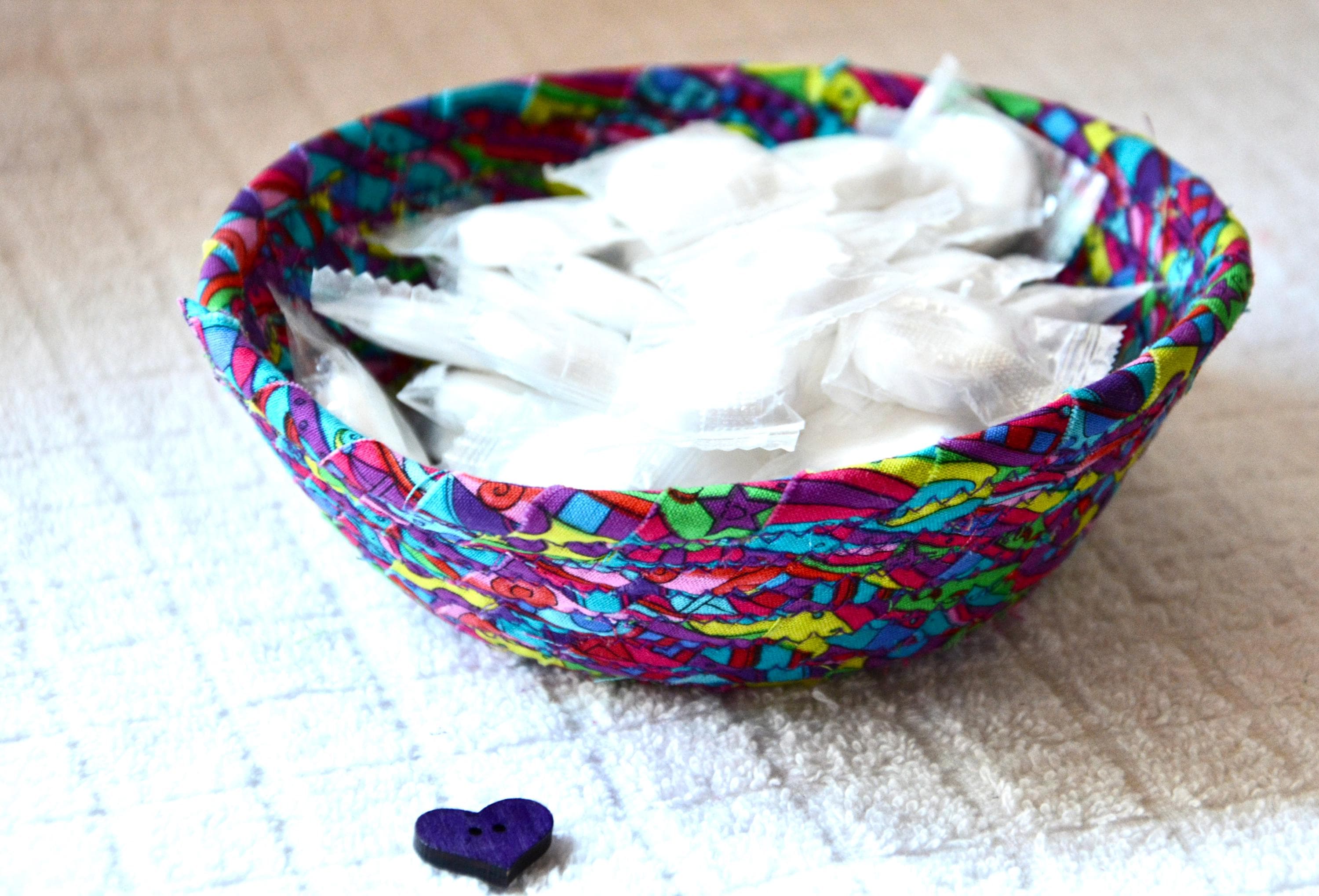 I designed and created this lovely basket in my smoke-free home studio. Heart, ruler, pen, bead, candy props not included. Spot clean! Please feel free to contact me with any questions. Custom orders welcome!