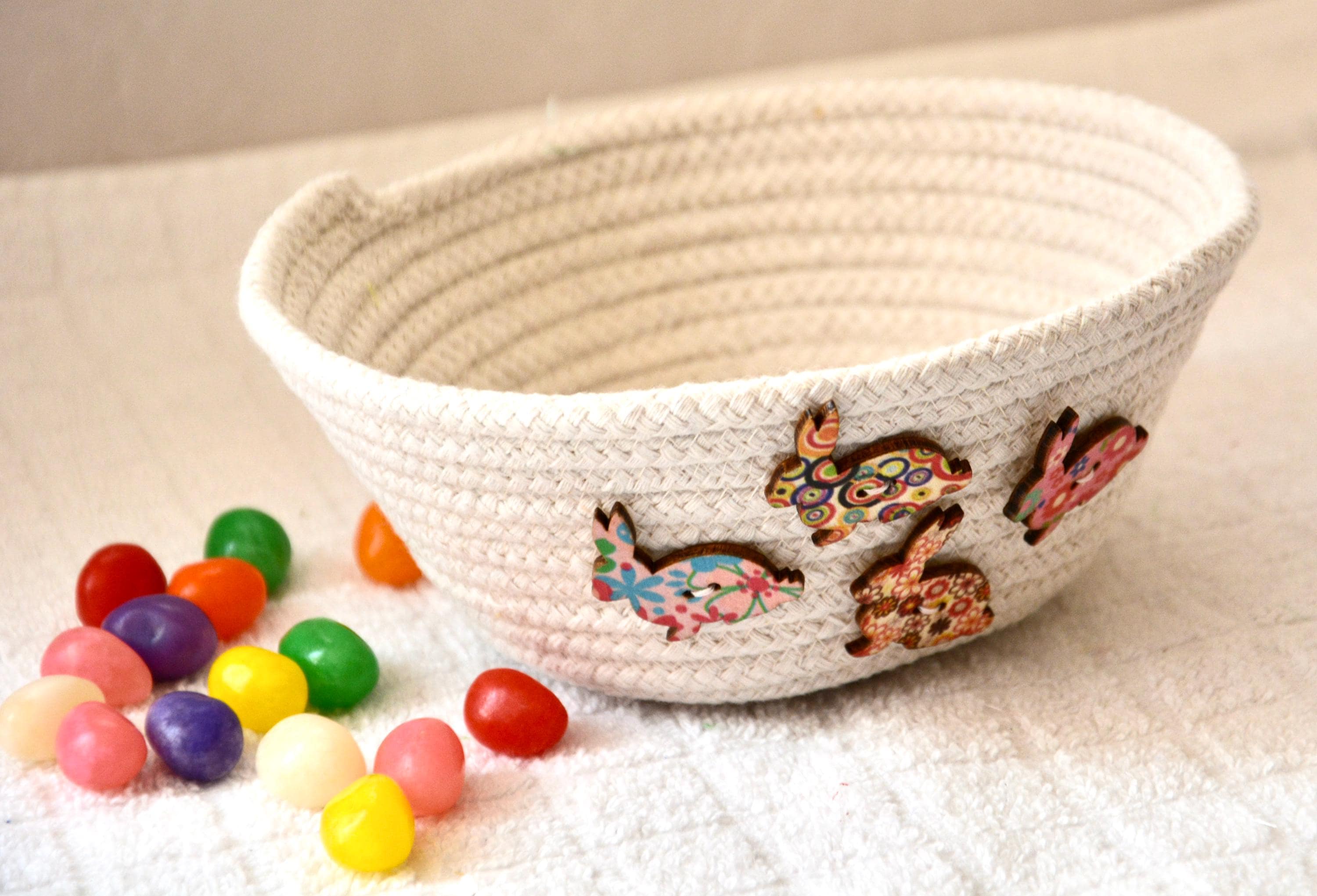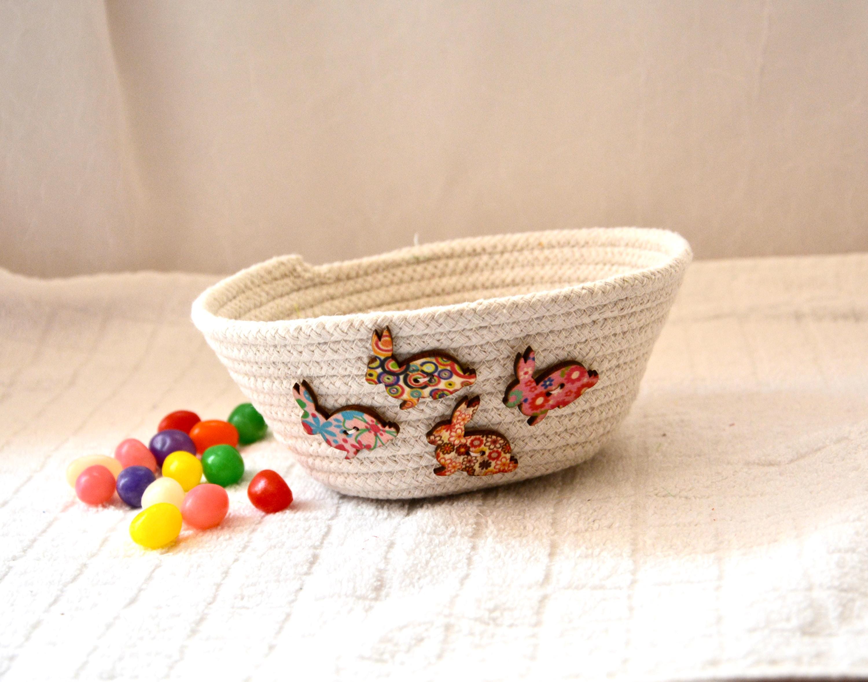 The cute wood bunny rabbits on the basket are included for a nice accent.