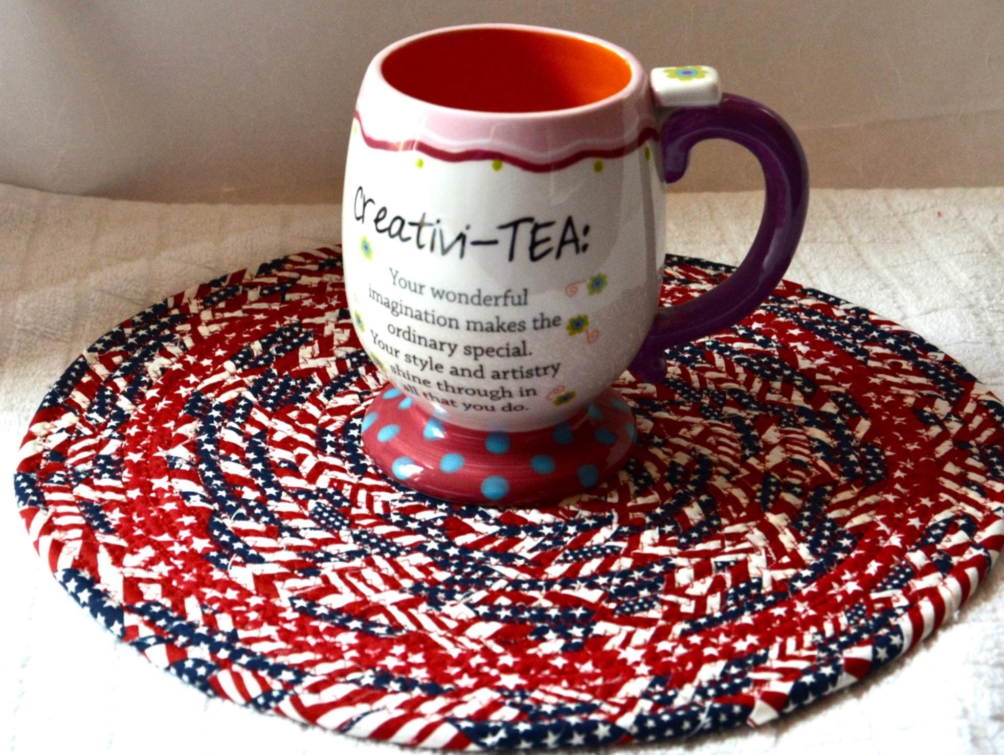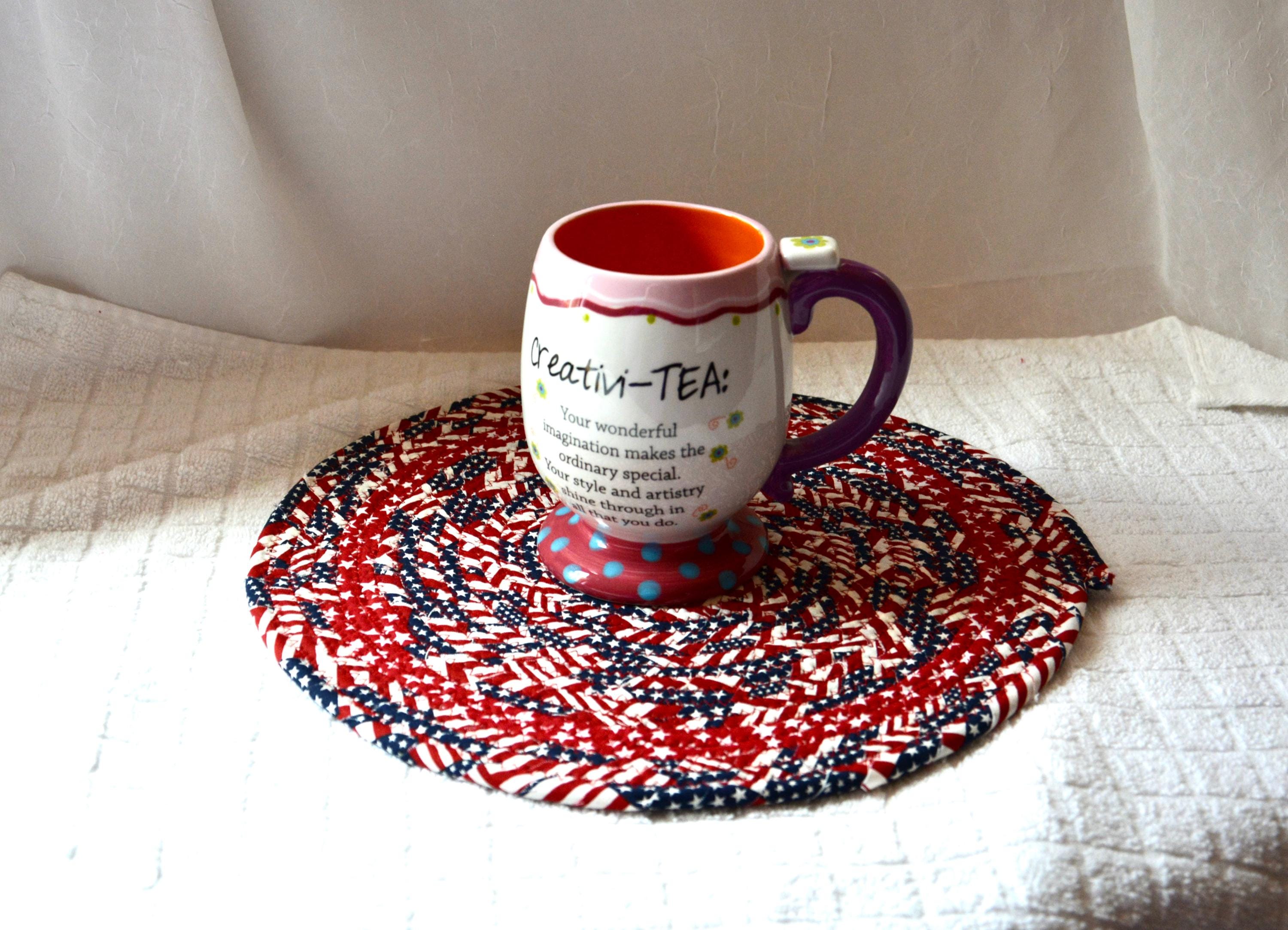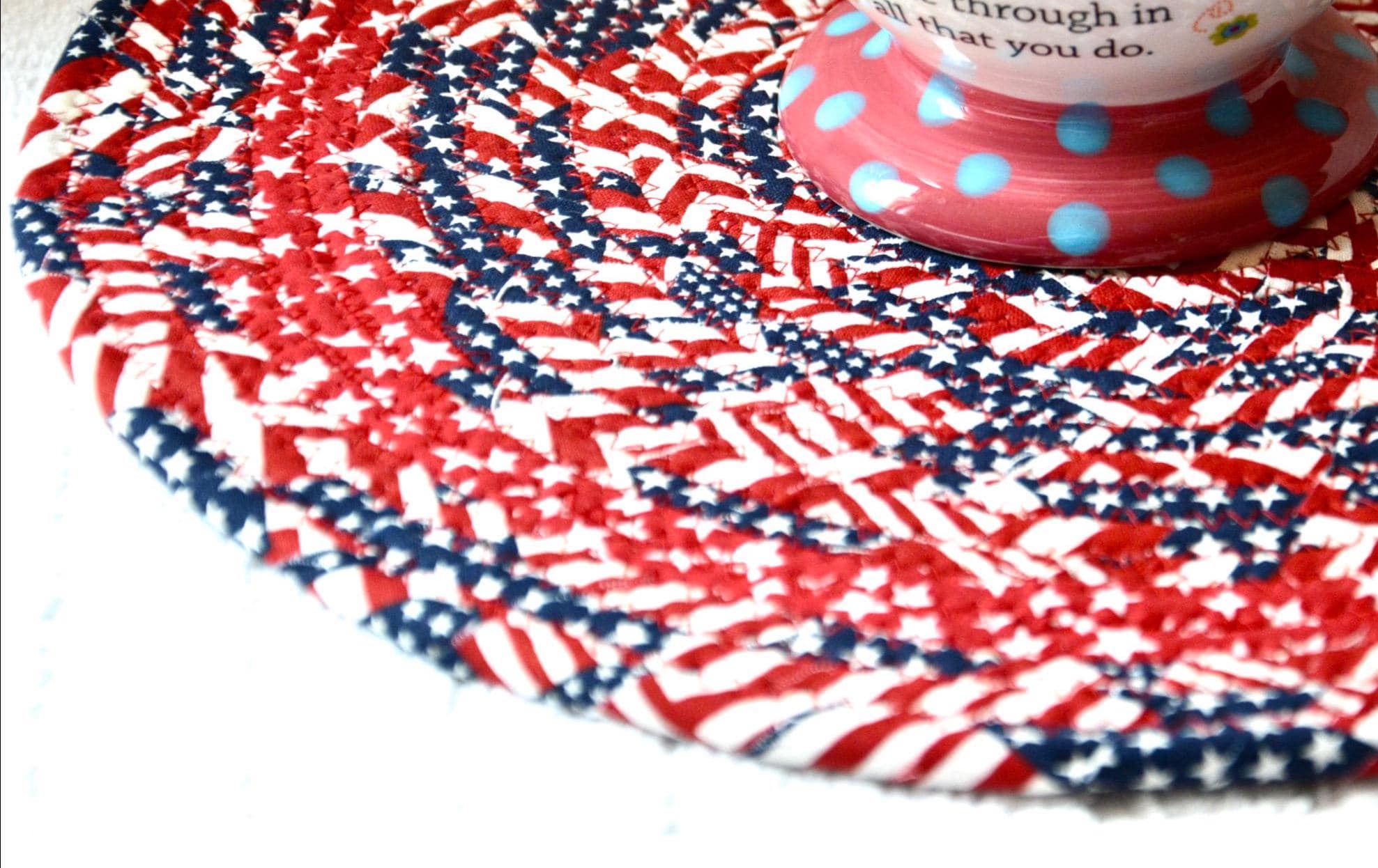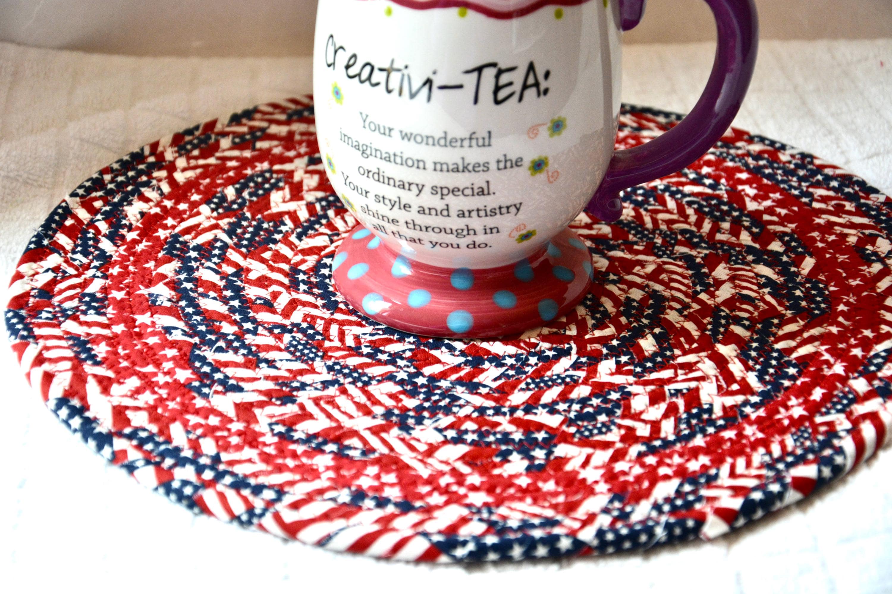 Handmade Patriotic 4th Place Mat, July 4th Table Trivet, 1 Decorative Red White and Blue Table Topper, Hot pad, Memorial Day Decor