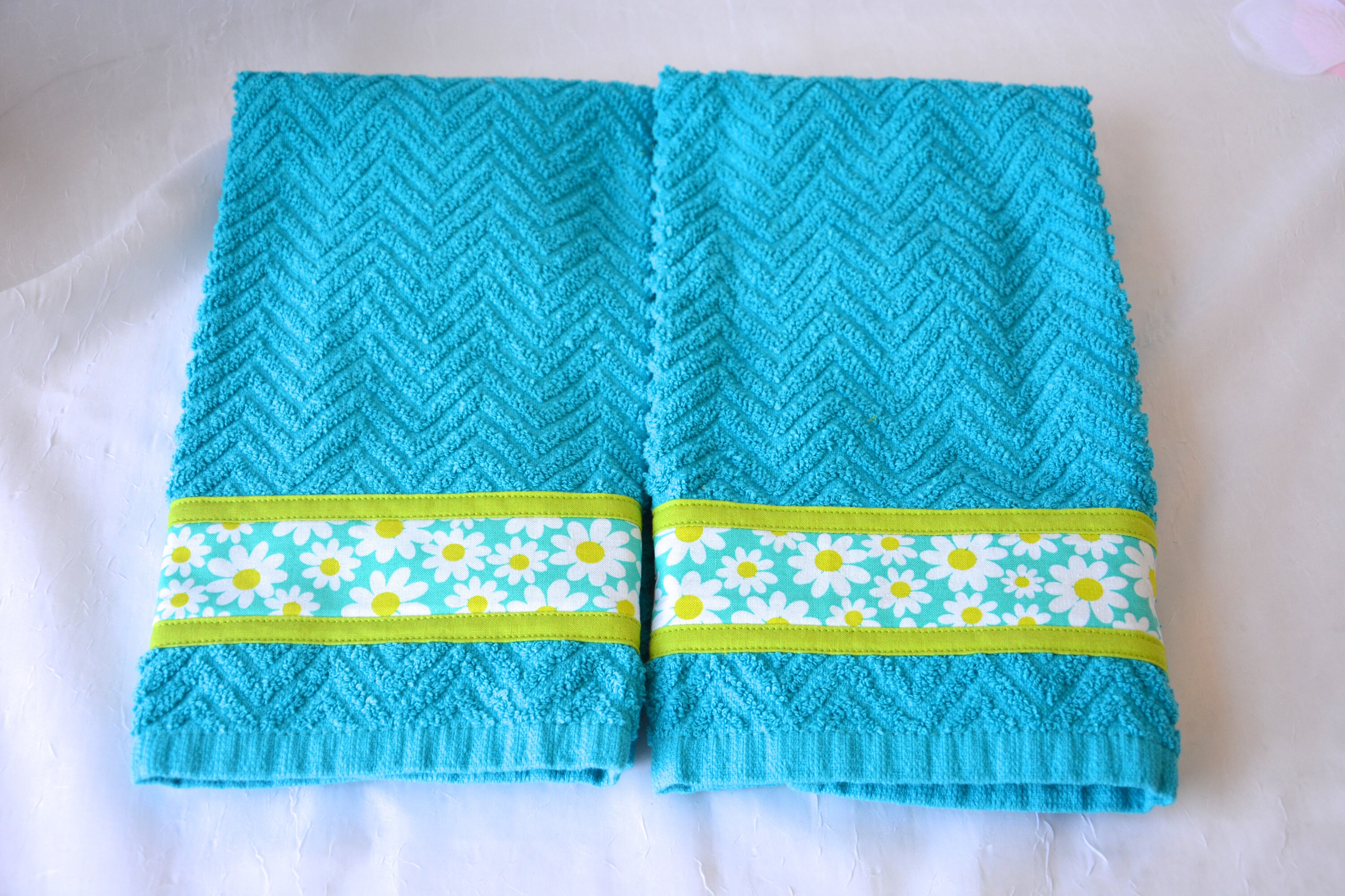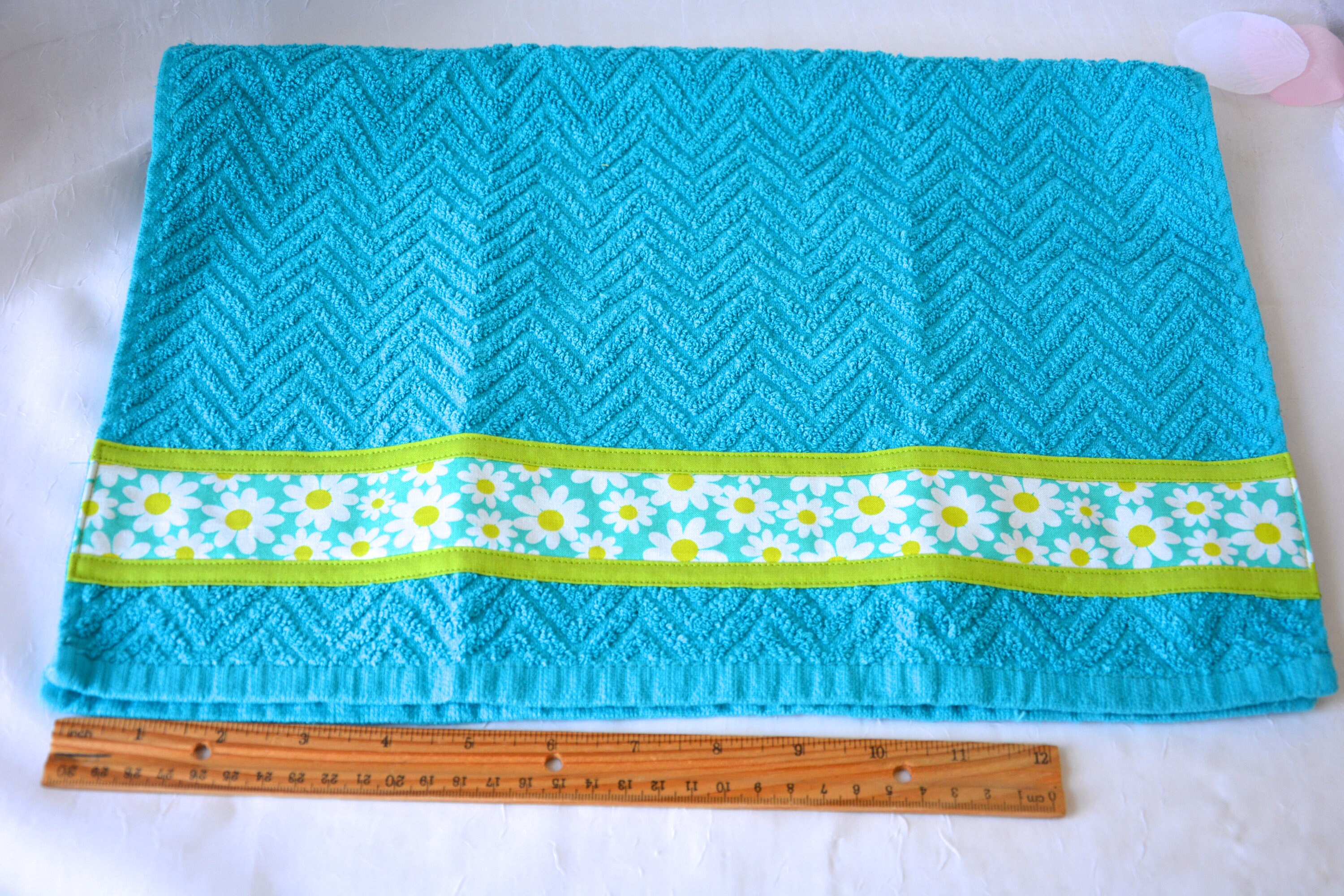 Each towel measures: 22"x 14" and is 100% cotton and are full textured! Very thick! Karen used high quality 100% cotton fabric to make these towels pop for a great Hostess Gift!