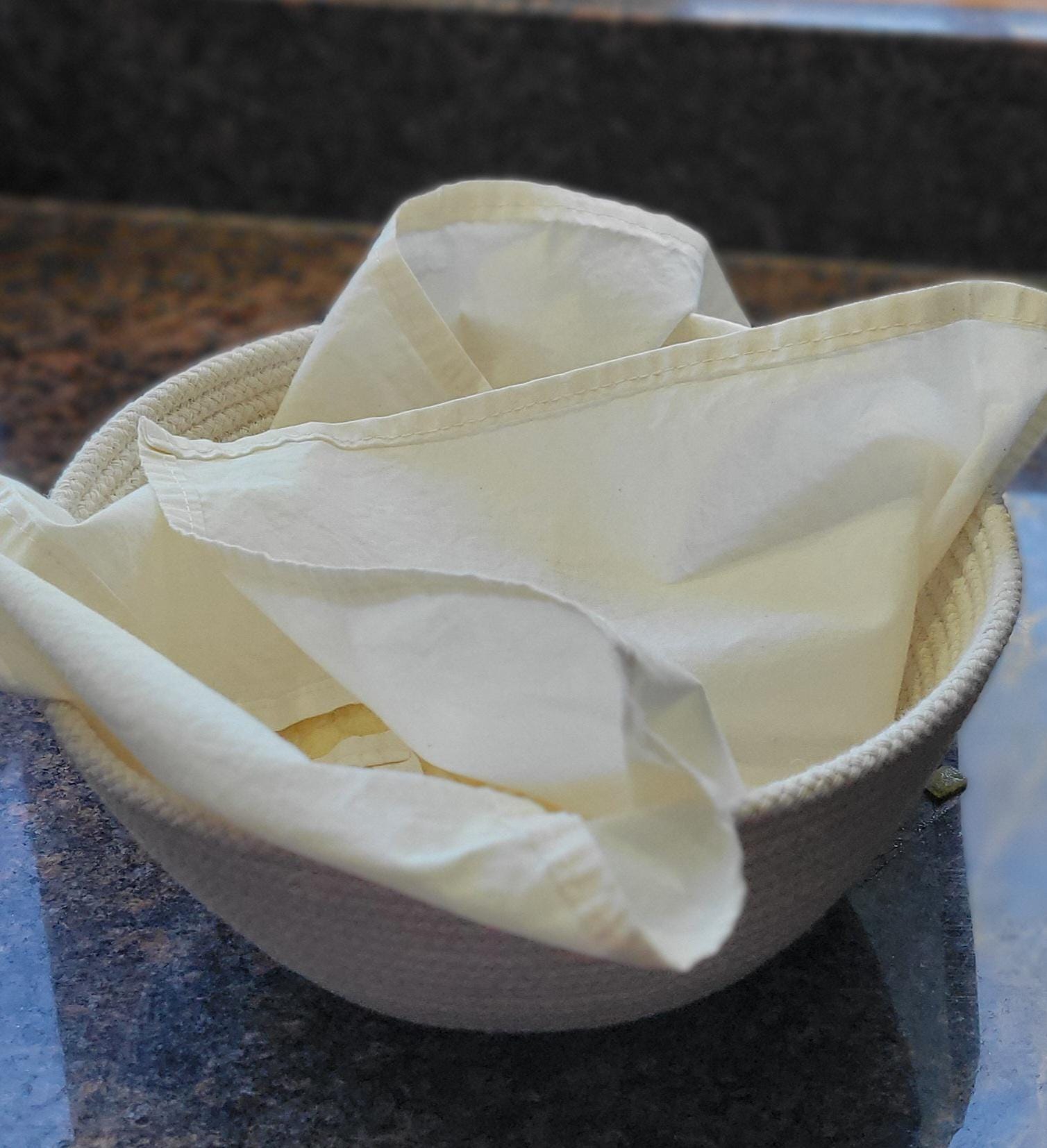 My handmade rope baskets allow some dough moisture to evaporate during proofing.