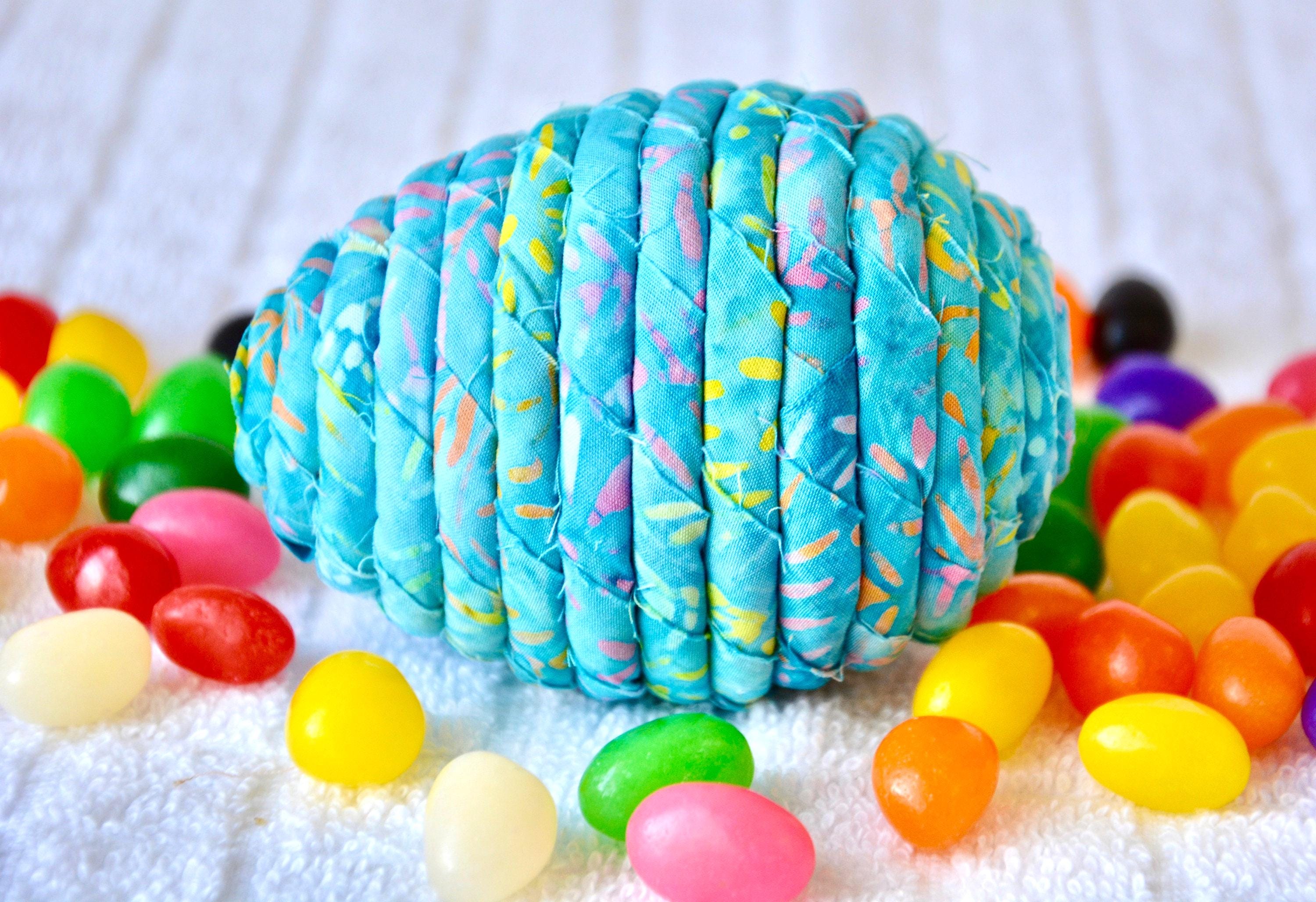 I just love this rich blue fabric, it created a unique swirl pattern. I designed and created this lovely Easter egg in my smoke free home studio. Easter basket, candy, bunny, jelly bean props not included. Color placement will vary. Egg does not open. Spot clean.
